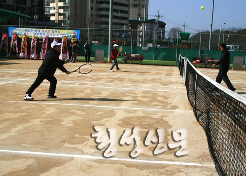 |  | | | ⓒ 횡성신문 | | , |  | | | ⓒ 횡성신문 | | 아울러 횡성군테니스연합회는 이날 회장 이· 취임식과 함께, 남자 단체전(3복식)과 패자부활전(3복식), 여자 개인전(풀리그) 경기인 제20회 연합회장기 대회를 개최했다. |