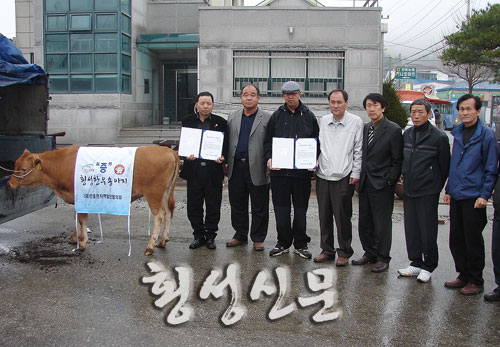 |  | | | ⓒ 횡성신문 | | 22일 오전 11시, 안흥면지역발전협의회는 안흥면사무소 앞 주차장에서 생후 6개월 된 암송아지 2마리를, 안흥1리에 거주하는 장현기 씨와 소사2리에 거주하는 김언영 씨에게 분양증서를 전달했다.