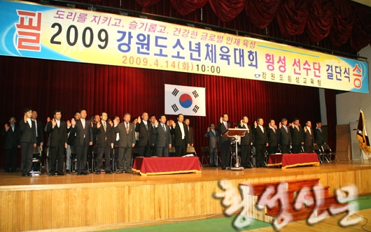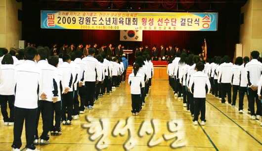 |  | | | ⓒ 횡성신문 | | 오는 16일부터 19일까지 강원도 고성군과 강릉, 속초 등에서 분산 개최되는 2009 강원도 소년체전에 출전하는 횡성군 선수단 출정식이 14일 횡성실내체육관에서 있었다.