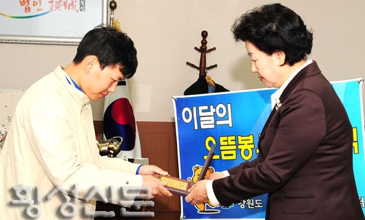 |  | | | ⓒ 횡성신문 | | 뿐만 아니라 매주 3~4회 횡성군종합사회복지관을 방문해 노인들의 말벗이 되어 외로움과 소외감을 해소하는데 기여함은 물론, 언제난 봉사를 필요로 하는 곳에는 내일처럼 헌신적으로 솔선수범하는 봉사자로 정평이 나 있다.