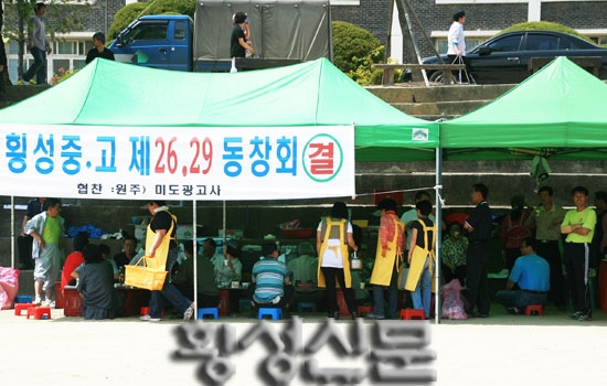 |  | | | ⓒ 횡성신문 | | 이날 체육대회는 개막경기로 줄다리기에 이어 축구‧족구‧배 등 진행되었으며, 체육행사가 끝난 후에는 전 동문들이 특설무대에서 모여 가수 녹색지대와 김봉학, KBS 토요노래마당 3승 우승자인 장현‧장혁형제, 원주실버밴드의 공연 등 한마당잔치가 다채롭게 펼쳐졌다.