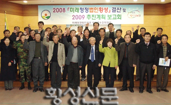 올 한해는 실천과 확산 단계를 넘어선, 우리군의 생존전략이며 비젼인 ‘미래청정법인 횡성' 출범 3년차로 정착의 해를 맞아 실천분위기를 더욱 확산시키고, 민간주도의 ‘미래청정법인 횡성' 실천분위기를 정착시켜 나가는데 면민들의 많은 관심과 참여가 있었으면 한다.