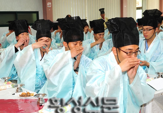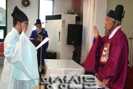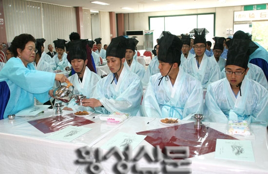 이날 주례를 맡은 횡성향교 조원섭 전교는 “좋은 달 좋은 날에 성인됨을 알리는 유건을 씌우고 족두리를 씌우니 이제부터 어린마음을 버리고 위엄있는 어른의 품격을 갖추어 가정을 다스리고 사회에 봉사하는 사람이 되어 달라”고 당부했다.