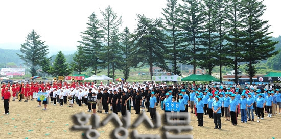 이날 체육대회는 12개 마을이 4개팀(군엇, 옥석, 백로, 성지)으로 나누어 군악대 반주에 맞추어 화려하게 입장했다.