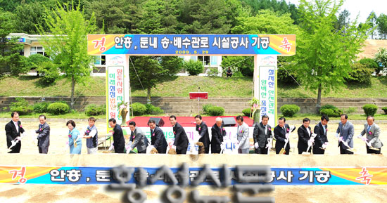 |  | | | ⓒ 횡성신문 | | 둔내와 안흥지역 주민들에게 깨끗한 물을 안정적으로 공급하기 위한, 둔내‧안흥 송수로 및 배수로 설치공사가 지난 5월29일 첫삽을 떴다.