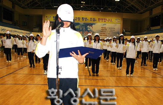 |  | | | ⓒ 횡성신문 | | 한편, 이날 횡성여고 김보경 선수는 “원칙과 규칙을 준수하고 정정당당하게 경기에 임해 기필코 종합우승을 차지하기 위해 최선을 다하겠다”며 선수단과 함께 필승의 의지를 다짐했다.