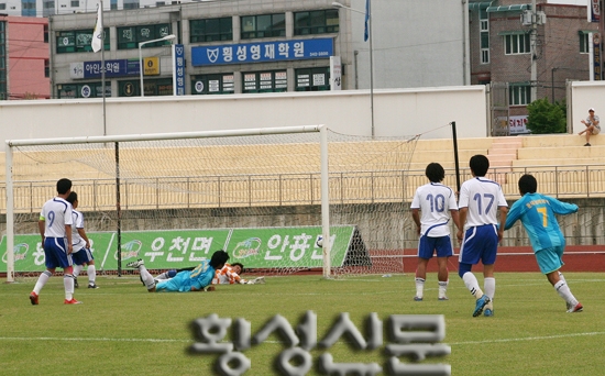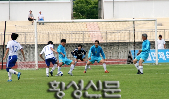 |  | | | ⓒ 횡성신문 | | 녹색 그라운드에서 잠시 휴식을 취한 뒤, 연장전에 돌입한 양팀은 20분동안 사이좋게 각각 1골씩을 주고 받으며 승부를 가리지 못하고, 승부차기로 최종 승패를 가려야 했다.