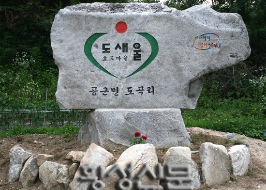 이 오솔길이 바로 공근면 도곡리(이장 최성환) 도새울 마을을 진입하는 도로로, 5번 국도 아래로 뚫린 터널을 지나 도곡교를 건너면 왼쪽으로 장승이 먼저 인사를 한다. 또한 그 옆에는 ‘도새울 효도마을 도곡리’ 라는 글귀가 쓰여 있는 마을 비석이 믿음직하게 마을을 찾는 방문객들을 반긴다.