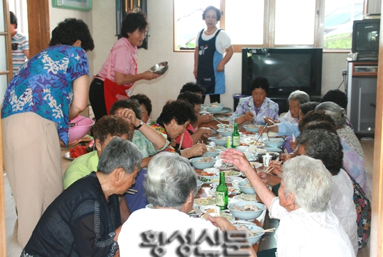 마을주민들의 평균연령이 70세에 육박해지고 초고령화 마을이다보니, 큰 마을사업은 기대하지 못하지만 욕심 부리지 않고 너그러운 마음을 갖고 사는 모습이 보기 좋았다. 찌는 듯한 더위에도 마을 회관에서는 노인분들에게 드릴 점심을 준비하느라 이성분 부녀회장을 비롯한 27명의 부녀회원들의 손길이 분주하다.