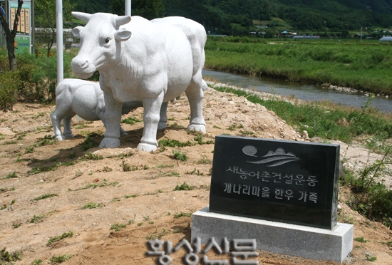 |  | | | ⓒ 횡성신문 | | 횡성읍에서 횡성댐 방향으로 가다보면 대관대천 옆에 새로 조형된 어미암소와 송아지가 대관대리 마을(이장 김학종)을 알리기라도 하는 듯 지나는 이를 반긴다.