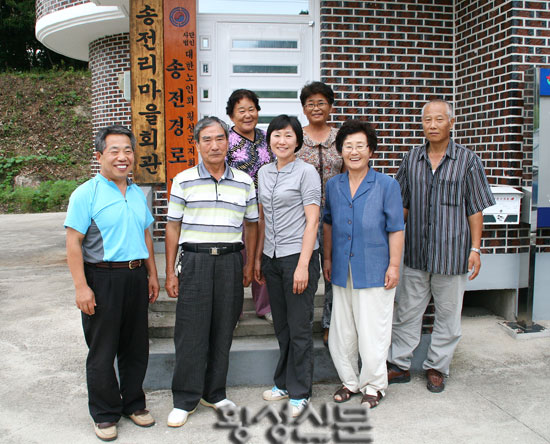 |  | | | ↑↑ 송전리 마을을 지켜 나가고 있는 주민들 (사진 앞줄 왼쪽부터 황종만씨, 이병도 노인회장, 김학영 이장, 조숙인 노인회 사무장, 이두옥 씨, 사진 뒷줄 왼쪽부터 임양순 부녀회 총무, 김영자 씨) | | ⓒ 횡성신문 | | 이밖에도 행정기관으로부터 사업비를 받을 여건이 되지 않아 올해부터는 마을 기금조성을 위해 ‘범죄없는 마을’을 추진, 신청하여 조금이나마 마을의 미래를 준비하기로 했다. 읍이나 군에서 긴밀한 협조와 관심이 있기를 주민 모두가 요망했다.