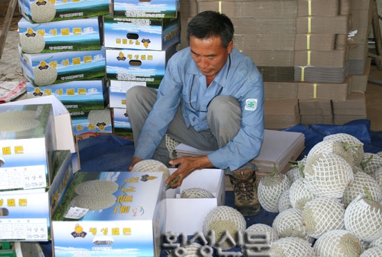 횡성메론 작목반, 첫 수확의 기쁨 만끽 … 8kg 한상자 2만5000원 선 판매