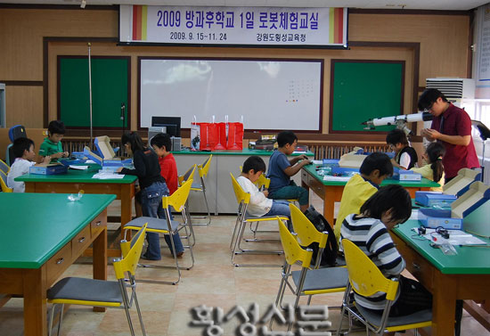 |  | | | ⓒ 횡성신문 | | 학생들에게 꿈과 희망을 심어주기 위해 지난 9월부터 횡성교육청(교육장 최욱진)에서 실시되고 있는 다양한 방과후학교 프로그램 운영을 통한 학교의 교육기능 보완을 위해, 2009 횡성 방과후학교 1일 로봇체험교실을 지난 9월부터 11월까지 횡성읍내 초등학생을 대상으로 실시할 계획이다.