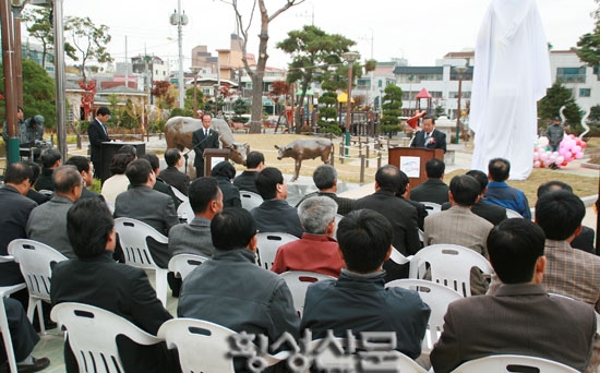 만세공원에 횡성한우 상징 헌장탑 ‘우뚝’