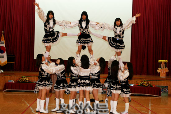 한편, 이날 연구 학습발표가 끝난 후 공개체육수업으로 횡성여고가 자랑하는 치어리더의 화려한 공연이 펼쳐지자 참석자들은 뜨거운 박수갈채를 보냈으며, 일부 참석자들은 부러워하는 표정까지 짓기도 했다. |