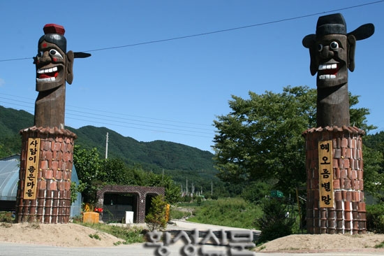 |  | | | ⓒ 횡성신문 | | 여기에다 마을 입구를 들어서면 우뚝 선 2개의 장승에 새겨진 ‘해오름 별 말, 사람이 좋은 마을’ 이라는 글귀는 이곳을 지나는 사람들의 발길을 멈추게 할 정도이며, 공병을 이용해 마을회관 앞에 설치한 벽은 청정마을의 이미지를 그대로 내포하고 있다.