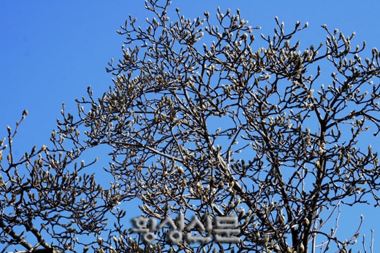 봄의 시작을 알리려는 듯 목련이 수줍게 꽃봉오리를 터트릴 준비를 하고 있다. 횡성읍 읍상리 한 가정집 담장에 목련나무가 화사한 자태를 뽐내고 있다.