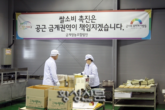 또한 농촌마을종합개발사업으로 지난해 9월 설립한 금나루 누룽지공장에서 친환경쌀로 ‘금나루 누룽지’를 만들고 있으며, 공근금계권역내 약 120ha에서 생산되는 친환경 쌀 350여톤 중 일부를 누룽지로 가공하고, 년간 7억원의 매출과 65톤의 무농약 쌀을 소비하는 효과를 올리고 있다.