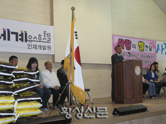 |  | | | ⓒ 횡성신문 | | 서원면 석화1리 소재 세계유스호스텔(대표 강영권)에서는 지난 17일 모금한 동전을 서원면사무소에 기증함으로써 백미 20kg 25포를 구입, 관내 독거노인 및 중증장애인가구 등 어려운 이웃들에게 전달했다.