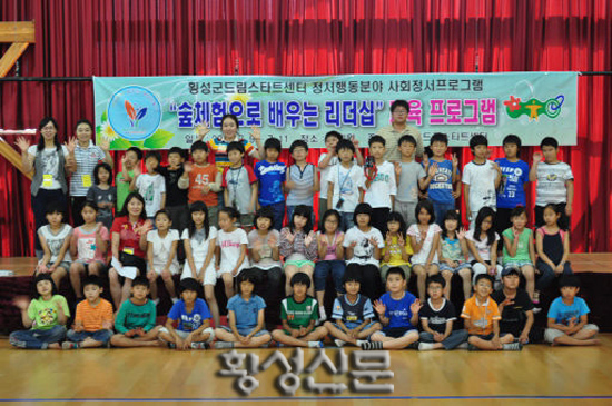 이번 프로그램은 드림스타트 사업대상 학령기 아동 45명이 참가했으며, 청정한 횡성의 자연에서 배우는 21세기 리더상의 주제로 맞춤형 사회정서 향상을 위한 자연교육프로그램으로 운영했다.