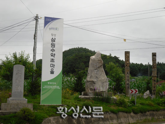 이규원 이장은 “삼원수약초마을은 고려시대 조씨 가문에서 삼대에 걸처 원수를 배출하였으며, 유리알 처럼 맑은 냇가에서 다슬기를 잡을 수도 있고 뗏목타기, 물줄기 따라 놓인 섶다리따라 걸어가는 1.2km에 환상의 산책로가 있어서 즐거운 시간을 보낼 수 있는 곳이다”고 자랑했다.