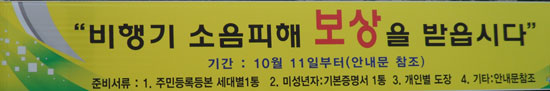 또한 ‘도로변 곳곳에는 비행기 소음피해 보상을 받읍시다’라는 현수막을 내걸고 주민들의 참여를 유도하고 있다.