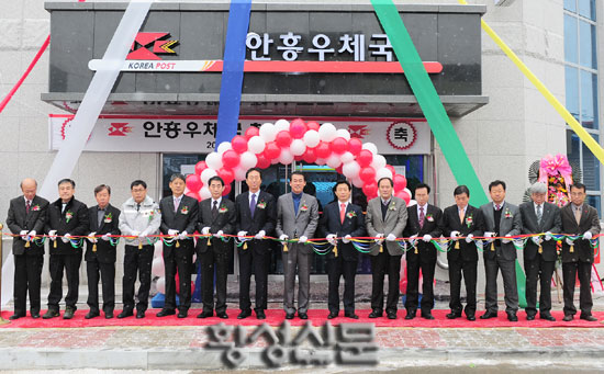 |  | | | ⓒ 횡성신문 | | 횡성우체국(국장 김경래)은 지난 9일 오전 11시 안흥우체국 준공식을 가졌다.