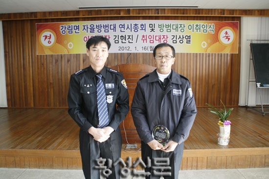 이날 김상열 취임대장을 비롯한 강림면자율방범대 전 대원들은 김현진 전임대장에게 지역 화합과 안녕을 이룩한 노고에 감사를 전하는 공로패를 전달했다.