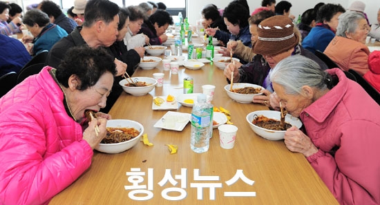 자장면 나눔행사는 2003년부터 시작하여 9개 읍·면을 순회하며 노인을 대접하는 행사로 서원면에 이어 지난 12일 우천면 우미관에서 400여명의 노인들에게 자장면 대접을 시작해서 13일은 안흥면 복지회관에서 150여명을 비롯해 15일 둔내면 500여명, 16일 갑천면 300여명, 19일 청일면 200여명, 20일 공근면 160여명, 21일 강림면 150여명, 22일 횡성읍 700여명의 노인들을 끝으로 3,000여명의 노인들에게 베푸는 큰손의 박애자 씨는 어김없이 올해도 두팔을 걷어붙였다.