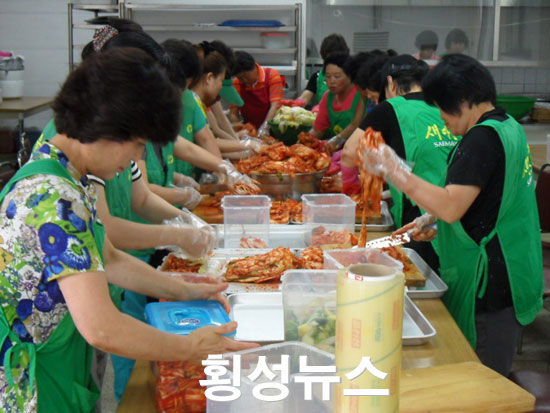 둔내면새마을부녀회(회장 함봉자)는 지난 15일 오후 2시 태성웨딩문화센터에서 사랑의 김치 담그기 행사를 실시하였다.