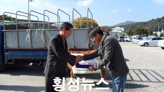 안흥면 지역발전협의회(회장 김주학)는 지난 16일 횡성한우 송아지 1두를 안흥면 소사리 진홍열씨(43세)에게 지원하였다.
