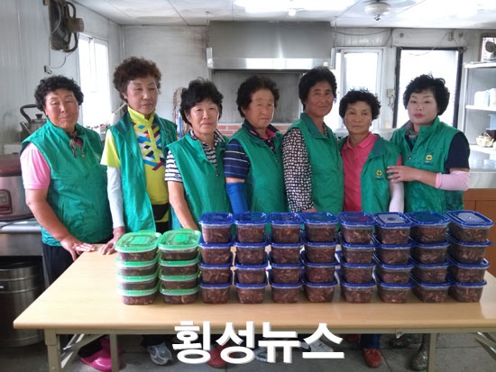 회원들은 이날 아침 일찍부터 복지회관에 모여 직접 농사지은 쌀로 떡을 만들고 명품 횡성한우로 불고기를 만들어 직접 전달하였다.