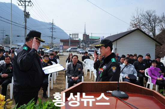 |  | | | ⓒ 횡성뉴스 | | 공근면 자율방범대 준공식 및 대장 이·취임식 행사가 지난 15일 오전 10시 30분 학담리 406-8번지(진한우 옆)에서 주민, 기관단체 등 약 80여명이 모인 가운데 열렸다.