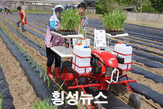 이들 단체는 지난 2일 횡성읍 입석리 공동과제포 3,740㎡에 회원 30여명이 모여 옥수수묘를 농업 신기술을 적용한 채소이식기로 자동화 묘 식재를 실시했다.