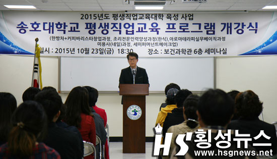 |  | | | ⓒ 횡성뉴스 | | 송호대학교 평생직업교육 프로그램 개강식이 지난 23일 보건과학관 세미나실에서 한규호 군수, 정명철 송호대학교 동문회장 등이 참석한 가운데 열렸다.