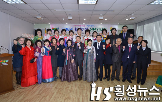 횡성군 여성단체장들이 한자리에 모여 신년덕담과 정보를 나누는 ‘2016 횡성여성 신년인사회’가 11일 오전 11시 여성회관 강당에서 열렸다.