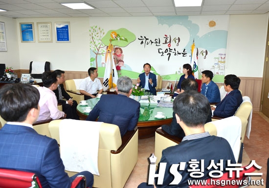 | ↑↑ 중국 전기자동차관련 투자단이 30일 오후 횡성군청을 방문해 한규호 군수와 투자방안에 대해 논의하고 있다 |