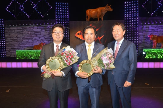 | ↑↑ 한우축제에서 한규호 군수가 왕반욘 윌슨그룹 회장에게 감사패를 수여했다. |