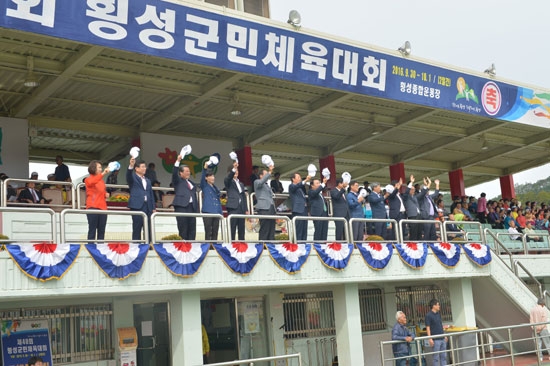 | 이번 체육대회는 군악대와 기수단을 앞세운 횡성읍선수단 입장을 시작으로 우천면, 안흥면, 둔내면, 갑천면, 청일면, 공근면, 서원면, 강림면 순으로 각 읍·면 선수단의 개성 넘치는 입장식에 이어 체육 공로자 표창, 대회사 및 축사, 선수대표 선서, 내년 횡성에서 열리는 강원도민체전 성공기원 퍼포먼스, 체육행사 순으로 다양하게 진행됐다.