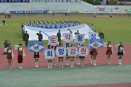 | 선수 선서에 이어 108연대 2대대 장병들의 공연과 어둔리 모둠북 공연으로 막이 오른 체육행사는 축구, 육상, 배구, 테니스, 탁구 등 운동경기 9개 종목과 줄다리기, 단체줄넘기, 제기차기, 고무신 멀리던지기 등 민속종목 4개 종목 총 13개 종목으로 한판승부를 펼쳤다.