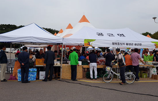 | 공근면은 지난 9월부터 자매결연을 추진하고 있는 인천광역시 남구 숭의2동에 횡성군 농특산물의 우수성을 홍보하기 위해, 7일부터 8일까지 2일 동안 인천 남구 문학경기장에서 농특산물 직거래장터를 운영했다.