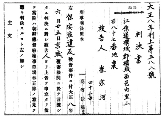 | ↑↑ 횡성지역의 3·1운동을 주도한 최종하 판결문 |