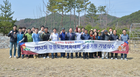 군은 2001년 이후 16년 만에 횡성에서 개최하는 제52회 강원도민체육대회 D-36일을 맞아, 9일 문화체육공원에서 도민체전 성공기원 유실수 기념식수 행사를 개최했다.