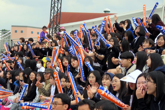 | ↑↑ 횡성 화이팅!= 개막식에서 수많은 관중이 횡성종합운동장에 모여 “선수들에게 힘내라!”며 환호를 외쳤다. |