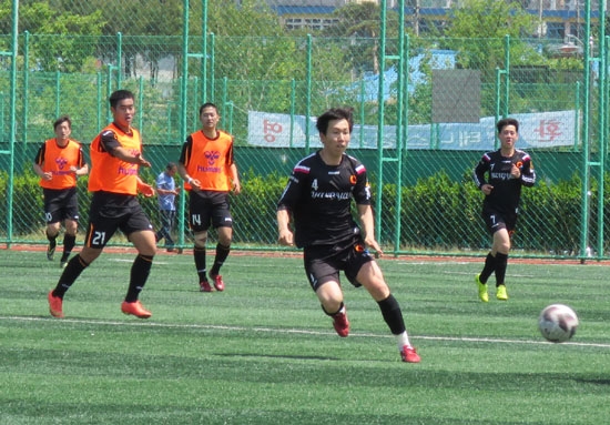 | ↑↑ 슛! 골인!= 문화체육공원에서 열린 축구경기에서 선수들이 멋진 경기를 펼치고 있다. |