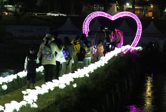 | 먼저 행사장은 전년도 설치수준에 올해는 용바위 근처에 ‘데크’를 추가 설치하여 섬강길과 연결하고, 지난해부터 시작한 저녁(밤) 볼거리로 조명을 설치했는데 올해에는 식당구역 추가 및 포토존으로 테마농장 조명시설을 추가로 설치하는 등, 더 많고 화려한 조명을 설치하여 낮보다 즐거운 야간볼거리(빛축제)를 제공한다.