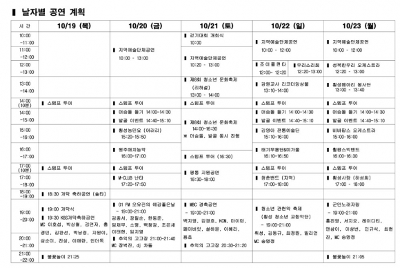 또한 매년 축제개최 시 축제장에 비해 상경기가 비교적 위축된 경향을 보인 원도심과 전통시장 일대를 활성화하기 위해 기획한 ‘프린지 페스티벌’이 준비됐다.