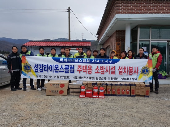 섬강라이온스클럽은 지난 11월 25일 청일지역 60가구를 위해 화재감지기와 소화시설을 설치했다. 또 12월에는 5가구에 연탄 2,500장을 지원하는 등 어려운 이웃을 위한 봉사활동을 이어갈 계획이다.