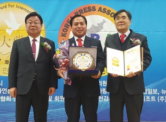 (사)한국언론사협회와 국제평화언론대상 조직위원회가 주관한 국제평화언론대상은 의정·교육·문화·사회발전공헌·지역발전봉사·언론창달진흥공헌부문 등 각 분야별로 각계각층의 다양한 사람들을 선정해 수여해 오고 있다.