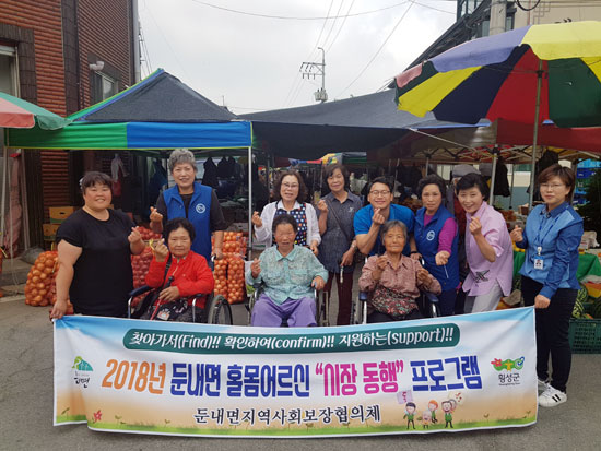 이에 둔내면 지역사회보장협의체는 관내에 이렇게 거동이 불편한 홀몸 어르신들이 많다는 것에 착안하여 ‘시장 동행 프로그램’을 기획 추진하게 됐다고 밝혔다. 시장 동행 프로그램은 둔내면 5일장에 홀몸 어르신들을 모시고 나와 필요한 물품을 구입하고, 맛있는 음식도 먹으면서 시장의 활기찬 기운을 받아 건강한 노후를 보내게 하는 프로그램이다.